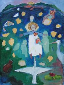 (Image info: Painting by artist Leslie Johnson as her way of sending metta during my surgery.)