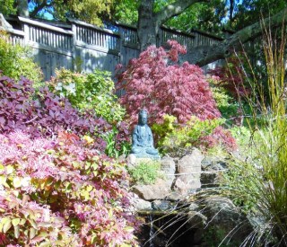 We did a traditional Vipassana Buddhist style retreat: sitting meditations alternated with outdoor walking meditations. The decks with their boards set the natural walking meditation aisles for formal walking meditation. The gardens were for less formal meandering and communing with nature. At different points throughout the day meditators would take a seat by the waterfall to do a listening meditation. One meditator kept returning to the base of an old oak. At the end of the day sharing she said it helped her feel her roots. One meditator took note of the great number of species of animals that share the garden with us, sensing community. Another noticed her comparing mind, how enjoying the garden got infiltrated by thoughts of ‘Why isn’t my garden like this?’ One meditator developed gratitude for her feet as she did walking meditation, and recognized what a gift they are, how some people don’t have the use of their feet or their feet are in pain. One meditator felt the flush of creativity that being fully present can provide.